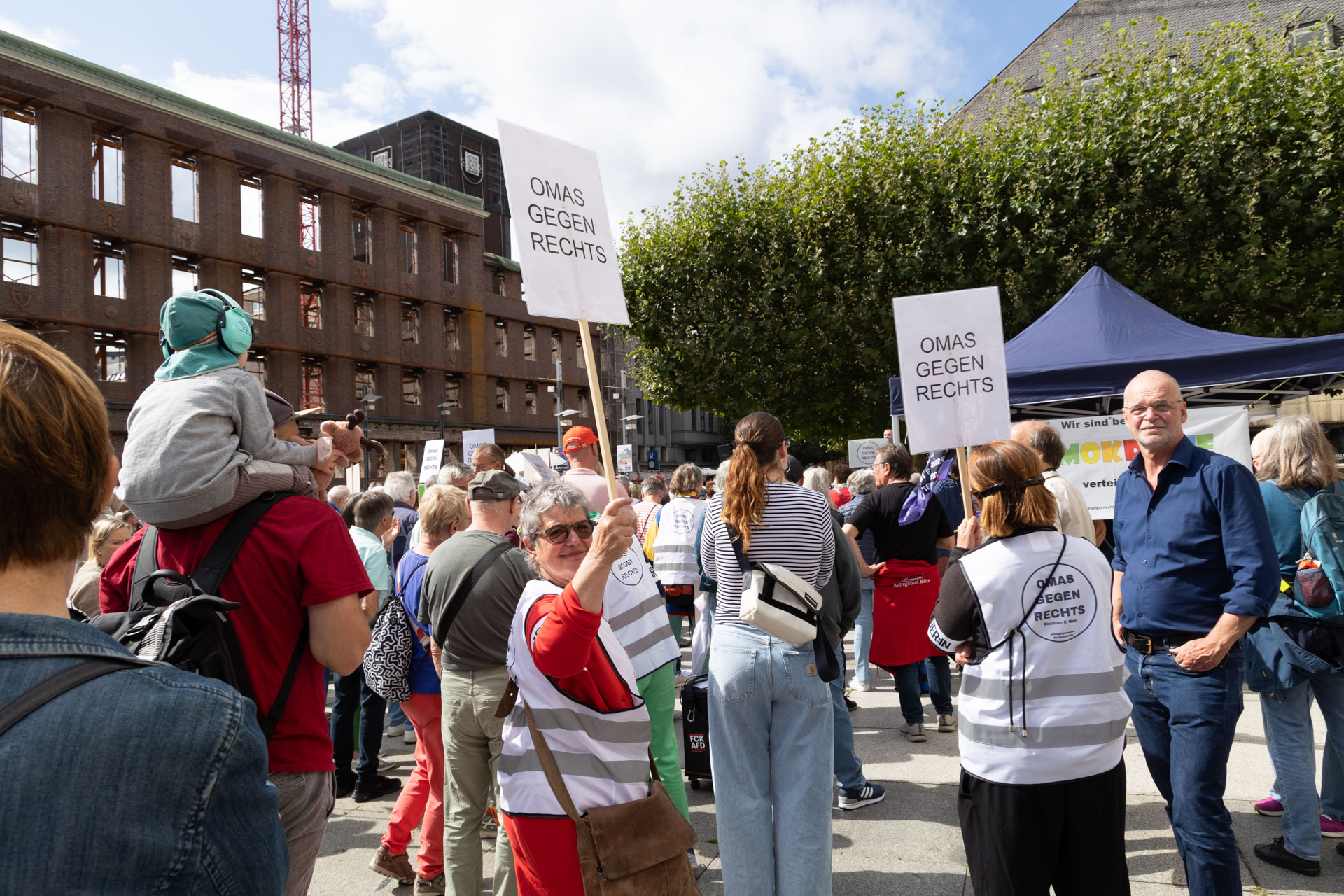 Anette Wichmann von den OMAS GEGEN RECHTS sowie die „Ehrenoma“ Sebastian 23