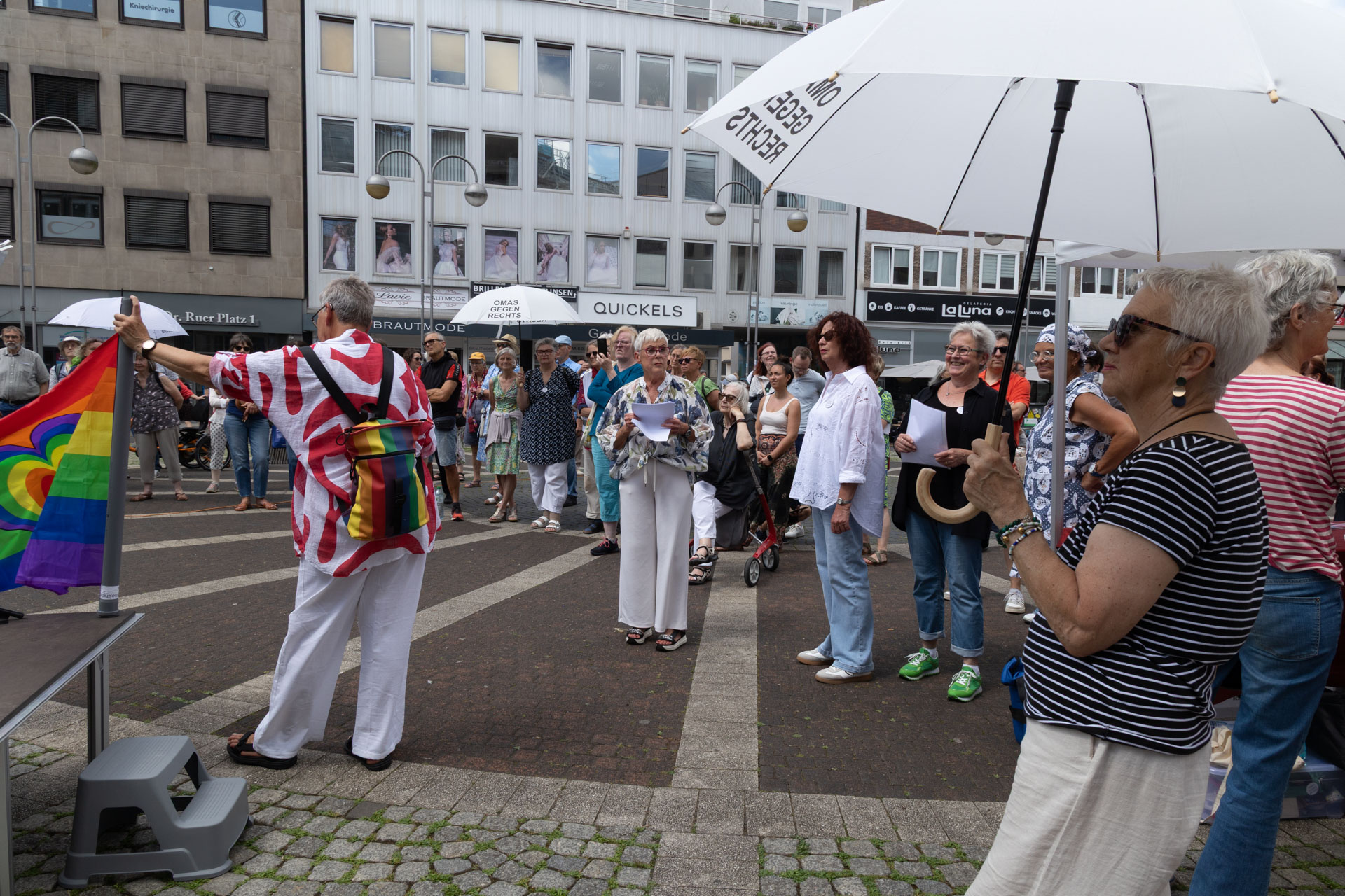 Diese Aktion ist eine von mehreren, die im Zusammenhang mit der Menschenkette der Omas gegen Rechts am 30.08.25 vor dem Bochumer Rathaus steht.